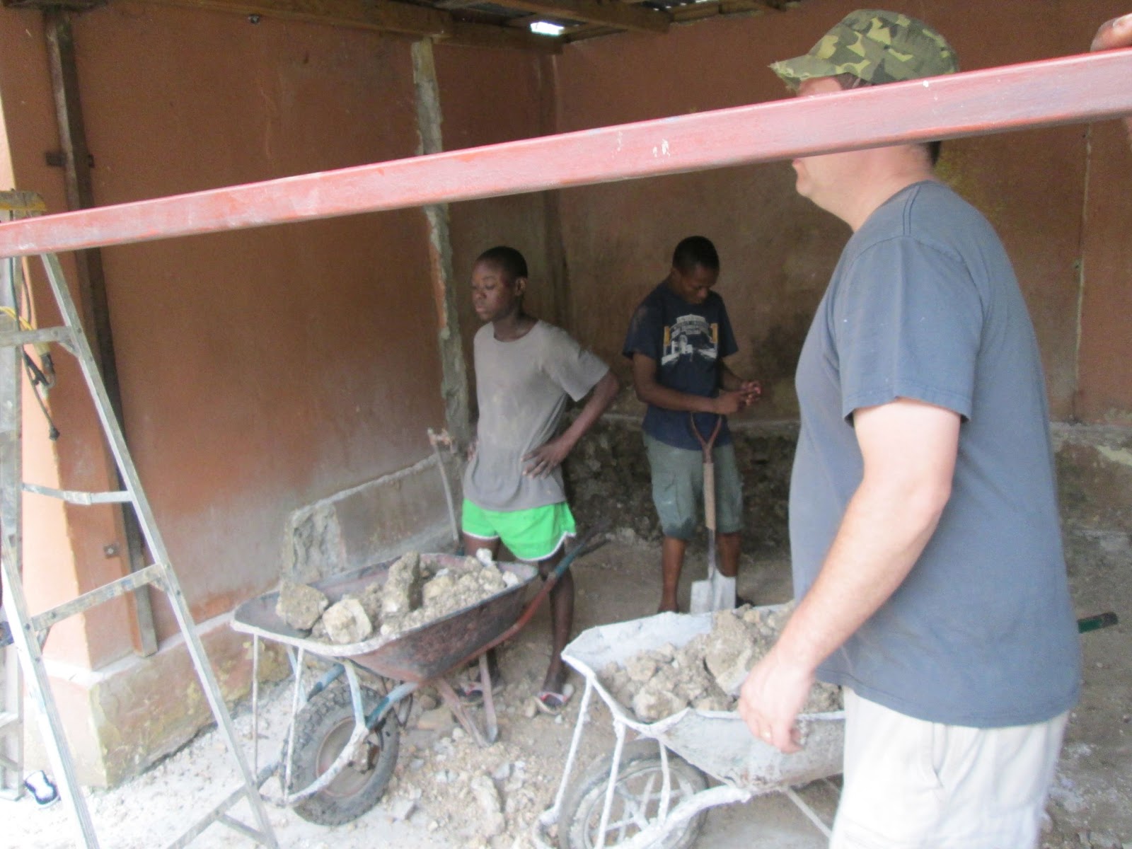 Everyone in the yard came to admire the work being done on the wall. Notice there is a logo of an amputee soccer player on the wall.